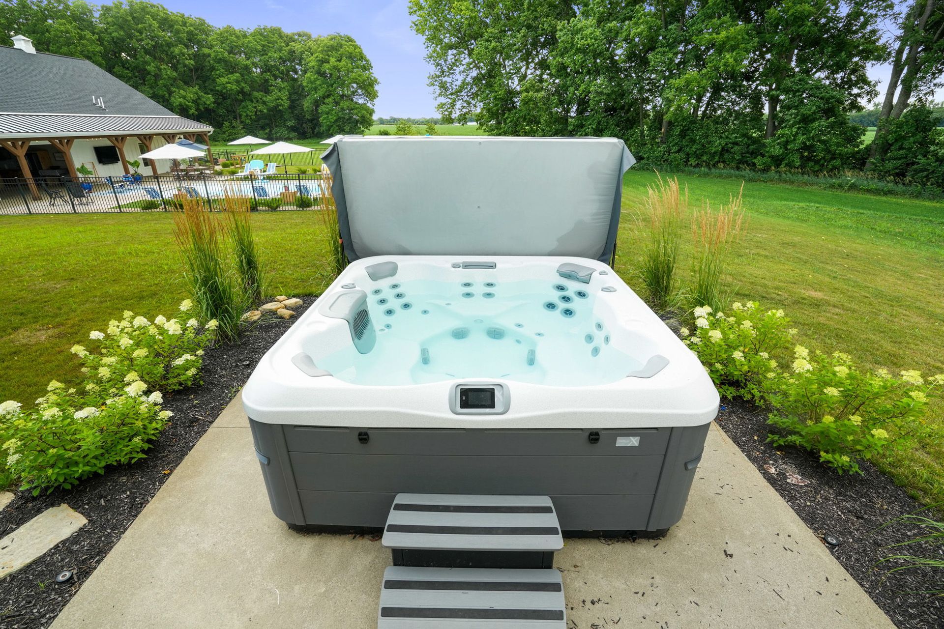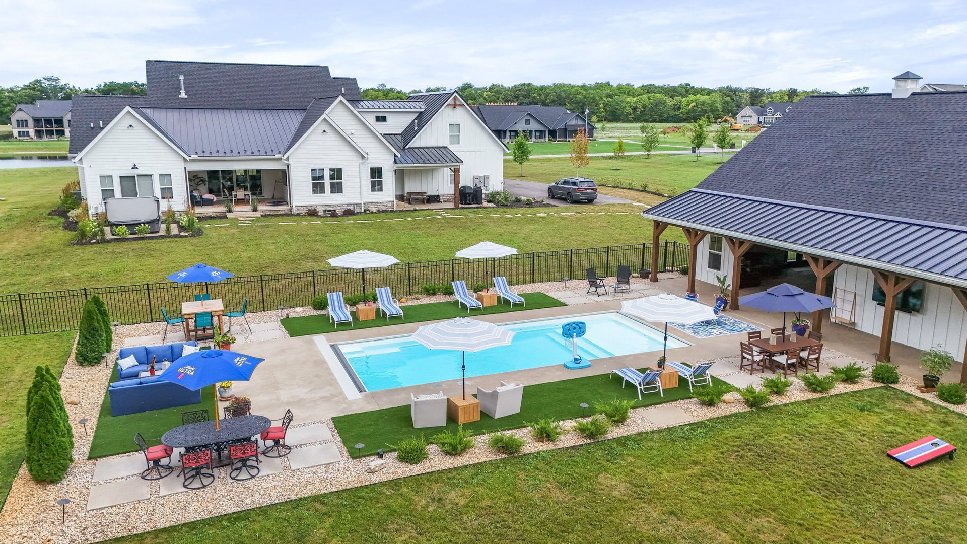 Dive into this fully custom, resort-style pool and spa retreat featuring a bespoke pool house, automated luxury systems, and refined finishes for the ultimate in high-end outdoor living.